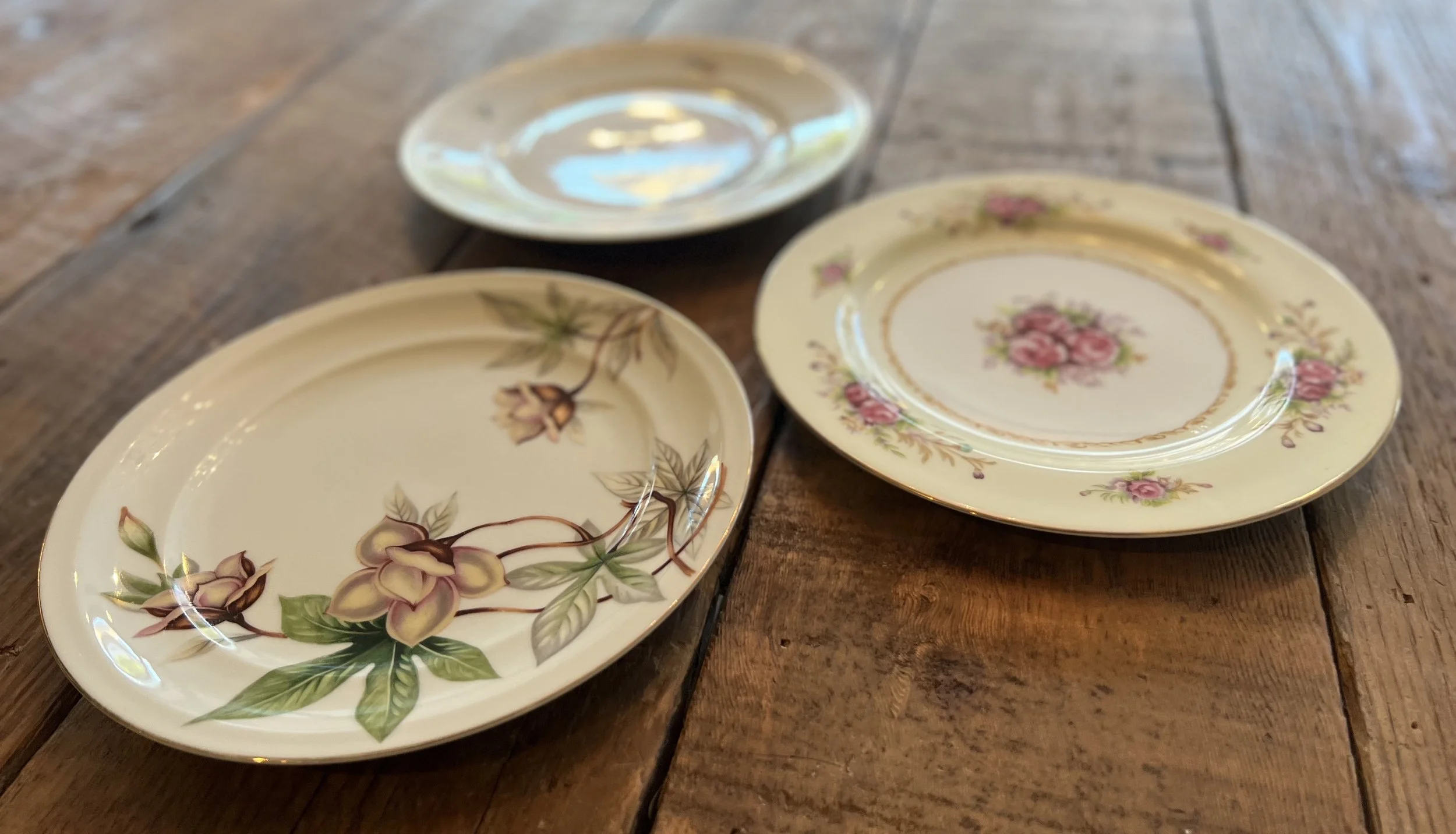 We have up to 30 antique glassware and up to 50 antique plates available for hire — $5 each