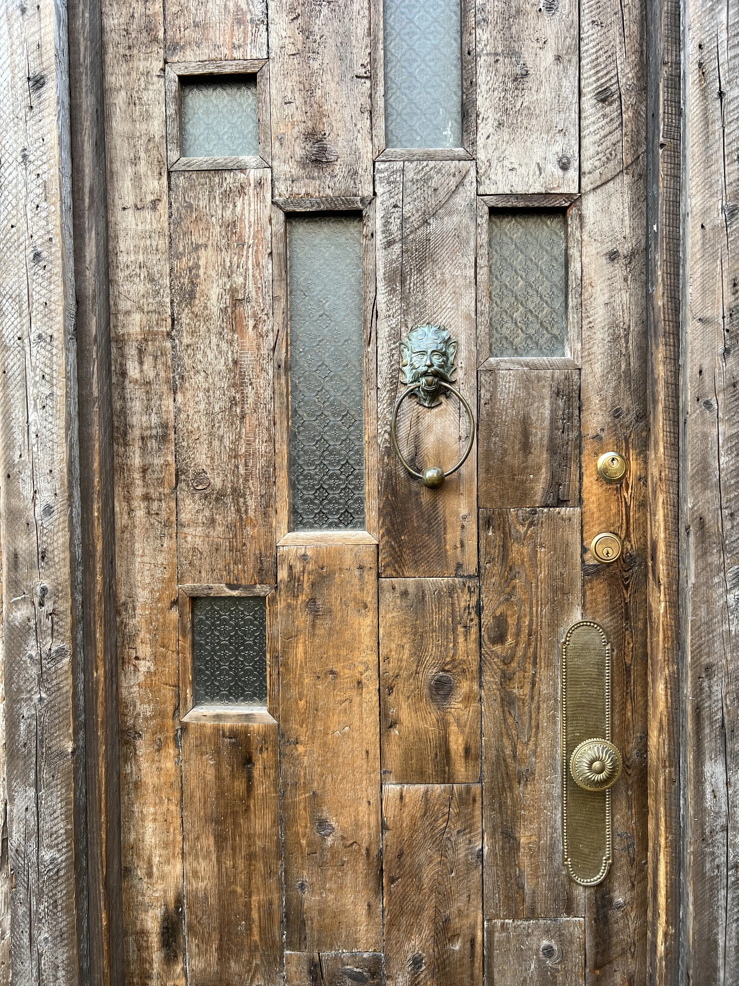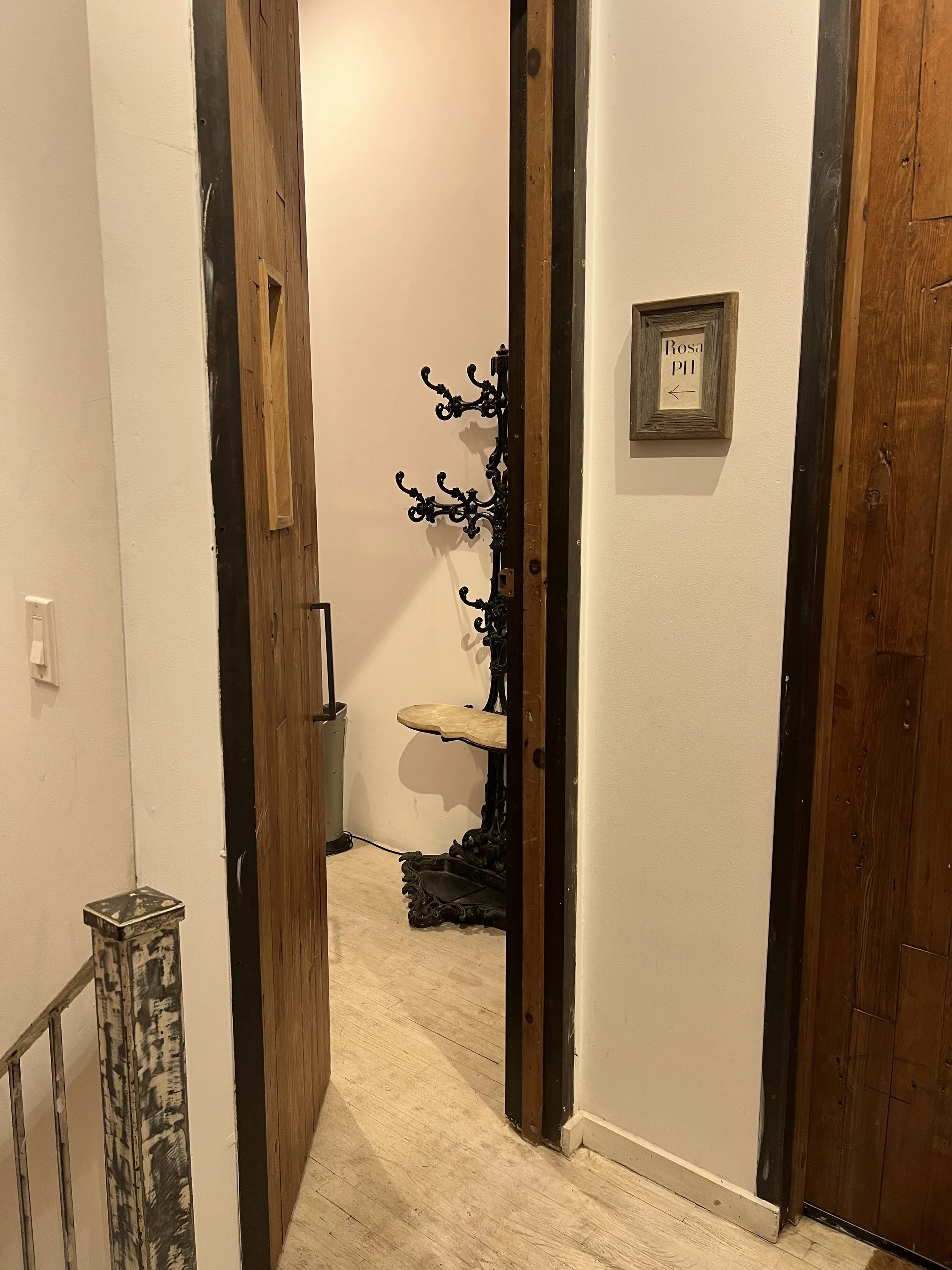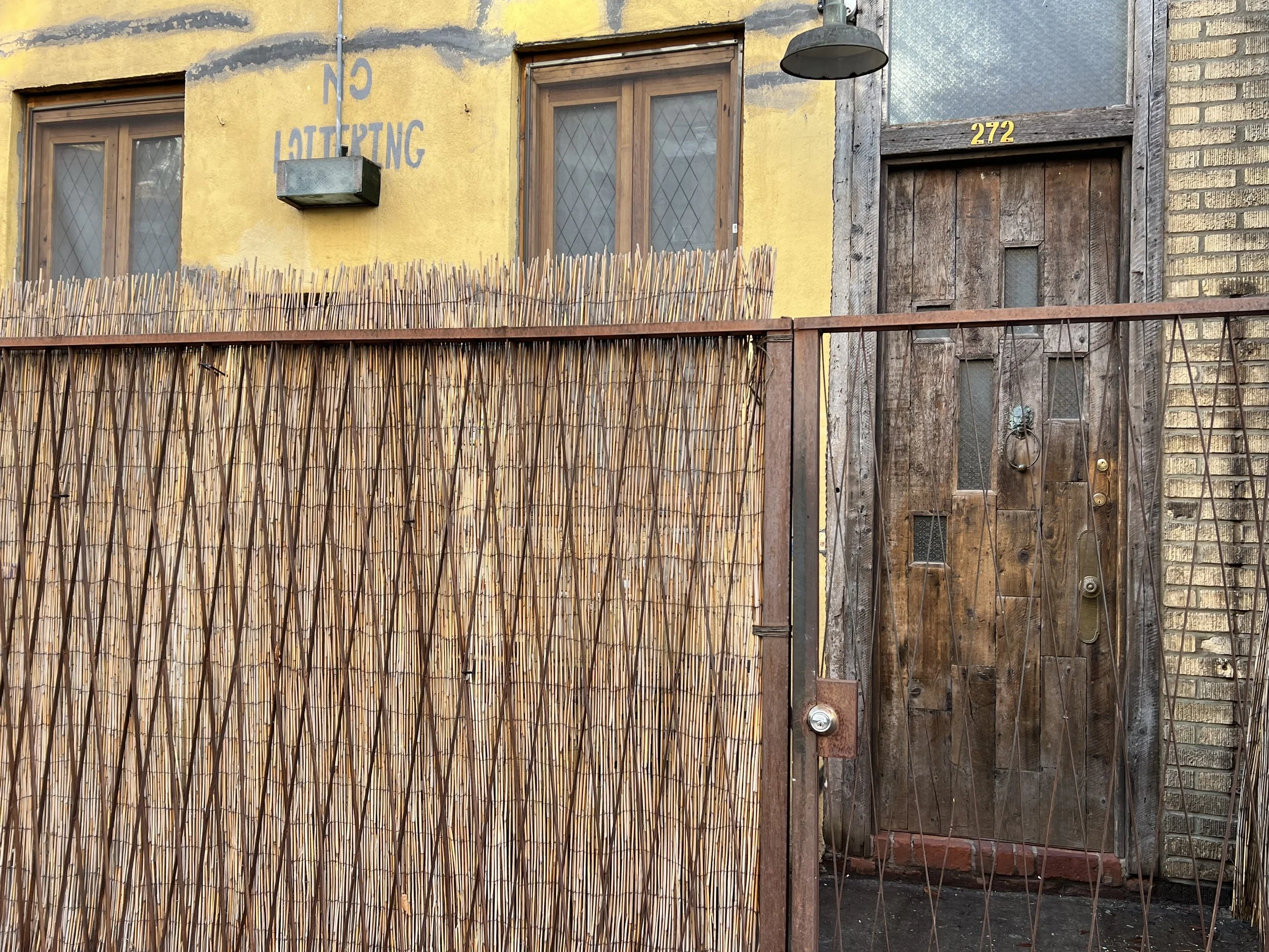 When you arrive, look for the brick townhouse with the metal and bamboo gate (image 1). Once you enter this gate, you will see a large wooden door directly ahead (image 2). This is the entrance to the building (not the penthouse).